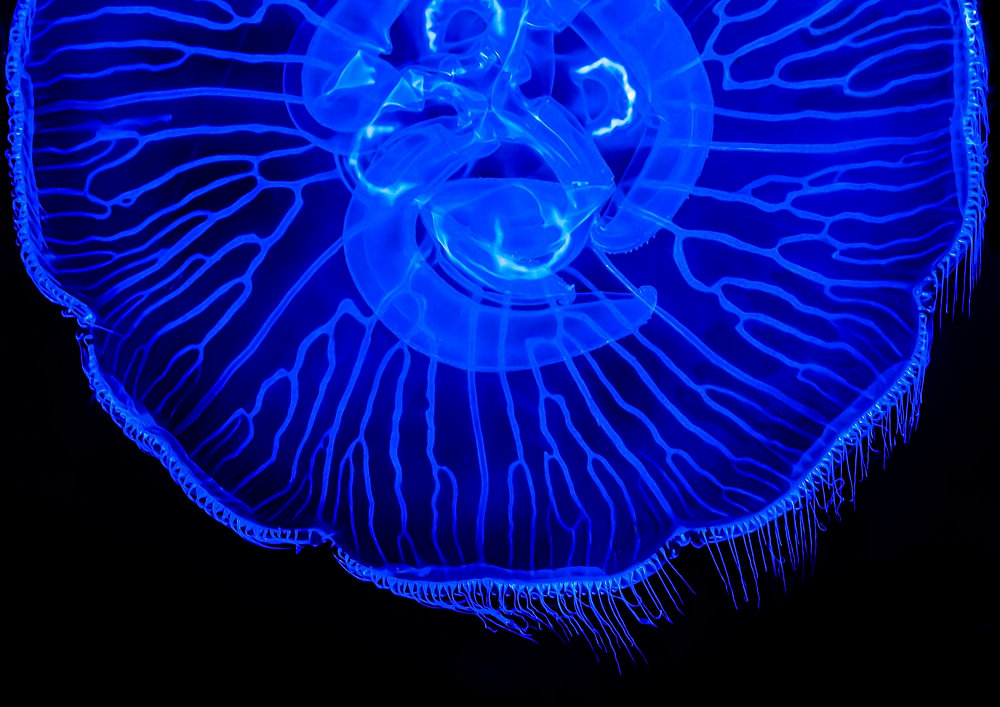 Jellyfish are composed of about 95% water, with their translucent bodies blending into their surroundings. Their anatomy features a bell-shaped umbrella and trailing tentacles equipped with specialized stinging cells called cnidocytes. The cnidocytes help them capture prey and defend against predators.